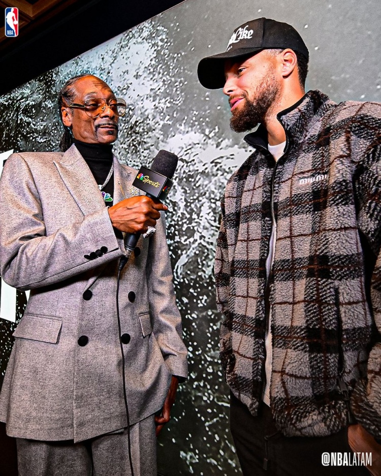 好意思国听说说唱歌手狗爷当天将担任快船长场比赛的NBC现场批驳员,他赛前大约采访了库里,两位听说合影迷恋。